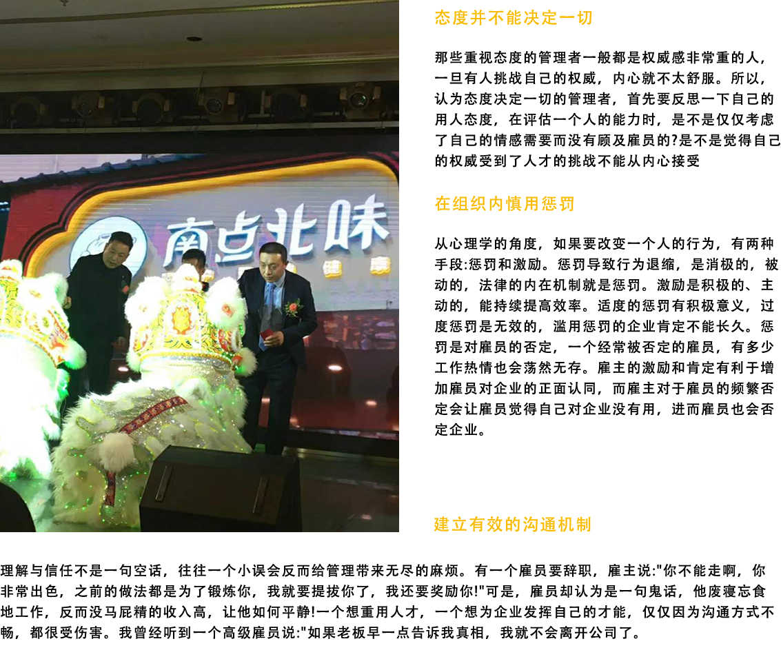 團隊精神的形成并不要求團隊成員犧牲自我,相反,揮灑個性、表現(xiàn)特長保證了成員共同完成任務(wù)目標而明確的協(xié)作意愿和協(xié)作方式則產(chǎn)生了真正的內(nèi)心動力。團隊精神是組織文化的一部分,良好的管理可以通過合適的組織形態(tài)將每個人安排至合適的崗位,充分發(fā)揮集體的潛能如果沒有正確的管理文化,沒有良好的從業(yè)心態(tài)和奉獻精神,就不會有團隊精神。